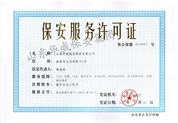 保安服務(wù)行業(yè)資質(zhì)證書